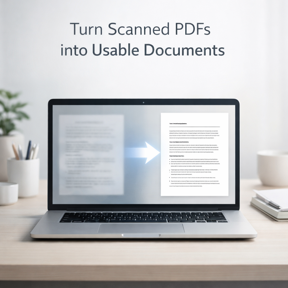 Just add your scanned PDF, click once, and get a clean, usable document you can actually work with.